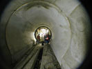 - Since TunnelTalk's visit, concrete backfilling of the pillar zone had progressed and on schedule to be complete in August. Meanwhile lining of the observation and drainage gallery above the cavern system was completed and the geotechnical monitoring instrumentation required was all in place. Subsequently, excavation of the large diameter access shaft was lowered to its junction with the large detector cavern and an anchored collar was being constructed in preparation for starting excavation of the cavern's top heading drifts as soon as the pillar was completed.