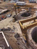 At point 5, excavation of the caverns and the shafts for the CMS machine is once again distinguished by the sheer size of the caverns, their very limited distance apart, and also by the generally poor ground conditions. At point 5, the 55m deep layer of upper water-bearing glacial moraine limits cover in the Molasse above the caverns to about 20m. To cope with the stresses developed during excavation under these conditions, the cavern end walls are curved rather than straight to create an inherently more stable, circular profile on all sides (Fig 3). Despite this, computer modelling confirmed that excavation of the two caverns so close together, could not be supported on such a narrow pillar of rock. "The solution, before any cavern excavation could begin, was to excavate this pillar zone and replace it with mass concrete," explained Ken Cole, the Engineer's Representative on site for the design and construction supervision team. - A tour into the underground works during the visits to CERN by TunnelTalk found this pillar excavation at its full depth, its peculiar profile outlining the eventual shape of the two caverns either side. In an approved alternative to the Engineer's method of starting at the bottom and excavating a series of individual drifts, one above the other, and back-filling these before starting the next, the contractor has excavated the full extent of the pillar before backfilling with concrete in 2m lifts.